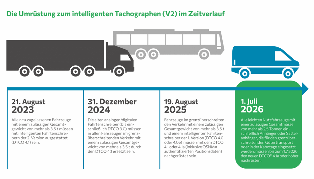 Gemäß EU-Verordnung müssen auch bei leichten Nutzfahrzeugen im grenzüberschreitenden gewerblichen Verkehr ab dem 1. Juli 2026 folgende Pflichten erfüllt werden: